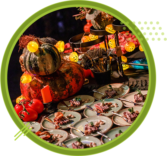 Als je een thema-party organiseert, creëer je eigenlijk een feestelijke wereld, waarin de dagelijkse realiteit even verdwijnt en jouw gasten zich onderdompelen in een unieke ervaring. Elk detail telt en draagt bij aan de totaalbeleving, Hierdoor maken we het tot een onvergetelijk evenement. Ook culinair laten we bij een themafeest onze fantasie de vrije loop. Een uitgebreid aanbod van heerlijke gerechten, helemaal in stijl gepresenteerd en klaargemaakt. Zo is elke hap niet zomaar een hap, maar een hele beleving!